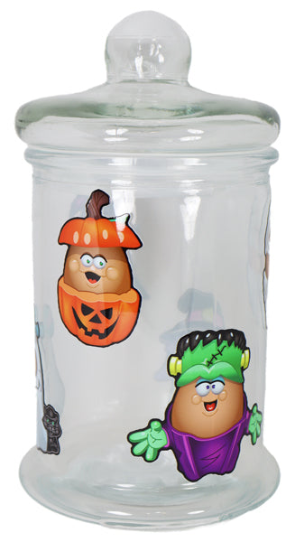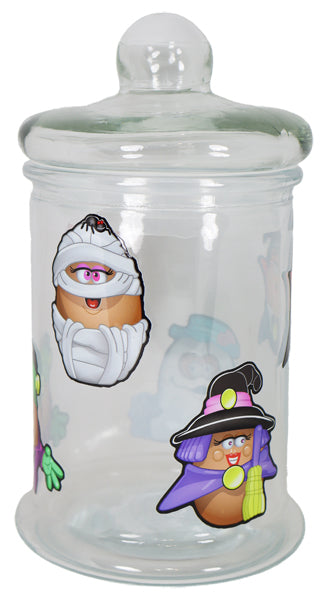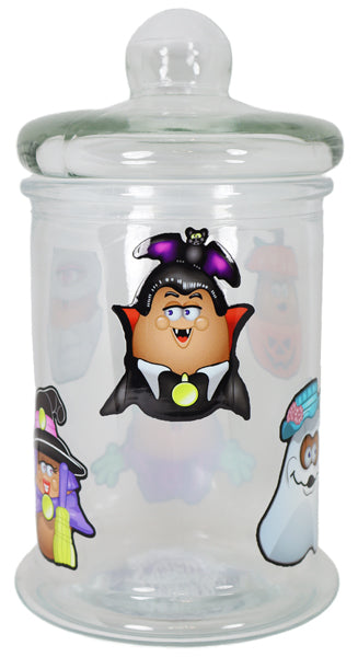 Decorative glass jar featuring six different classic Halloween nugget designs.